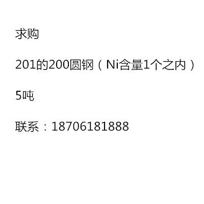 求購201的200圓鋼(Ni含量1個之內(nèi))5噸