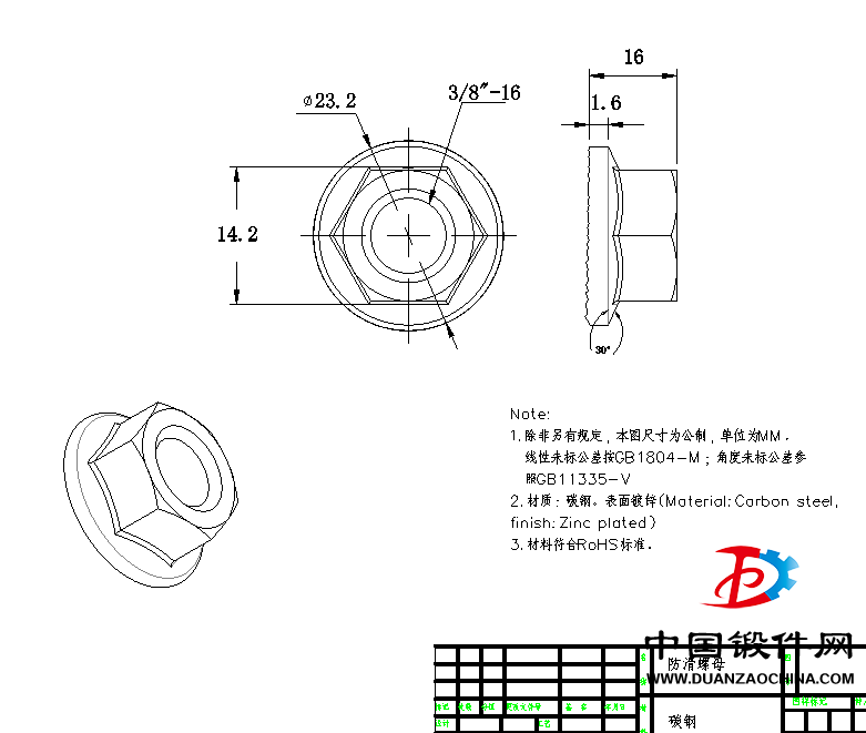 法蘭螺母3/8-16,11000只,尺寸看圖紙,與圖紙尺寸一樣。