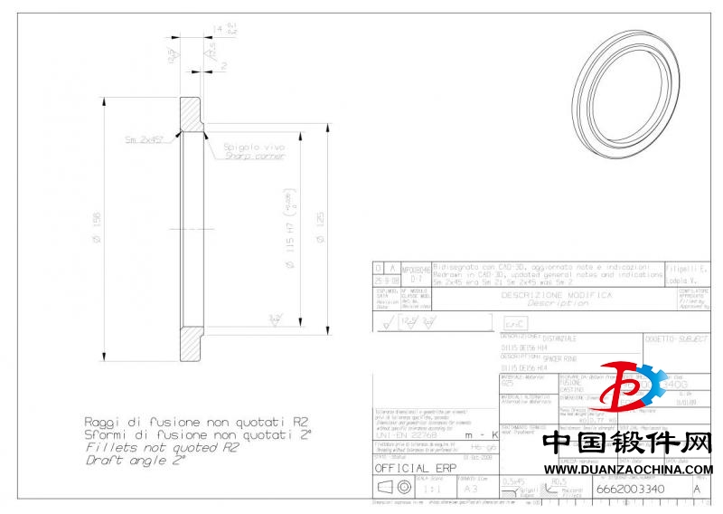 注明:附件圖紙為成品圖紙,我司需要的是毛坯產品。毛坯余量考慮3mm用于加工,材料16MN或者45鋼不需要熱處理。具體工藝為:鍛造(碾環)+包裝檢測。請報含稅包裝(托盤或者木箱包裝)到附近碼頭價格。表格中先報價有圖紙的。
