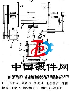 螺旋壓力機是利用飛輪旋轉(zhuǎn)積蓄的能量,靠主螺桿的旋轉(zhuǎn)帶動滑塊上、下運動使坯料模鍛成形的。螺旋壓力機根據(jù)驅(qū)動方式不同分為摩擦壓力機、電動螺旋壓力機和液壓螺旋壓力機三大類。如圖5—25所示為摩擦螺旋壓力機的工作原理圖。