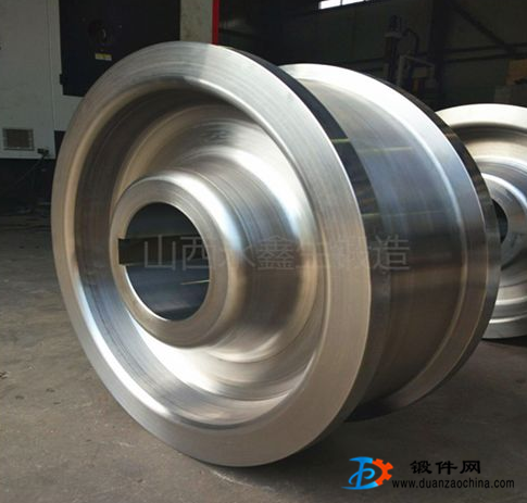 踏面呈圓錐形,在滾動圓附近錐度1:10。通過曲線時,外側車輪以靠近輪緣的較大直徑在外軌上滾動,內側車輪以較小直徑在內軌上滾動,這樣,一方面使車輪鍛件隨線路方向變化而起導向作用,同時內外輪滾動距離的不同還可補償內外軌長度之差的影響。