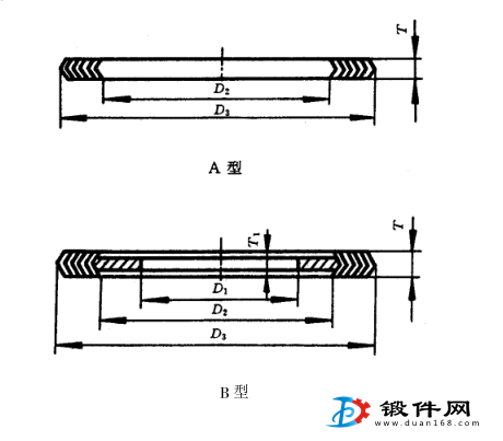 4.2 A型和B型墊片尺寸按表3的規(guī)定。