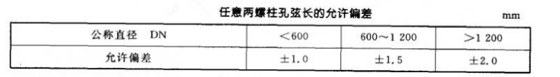 ②螺拄通孔中心圓直徑和相鄰兩螺柱通孔弦長的允許偏差為士0.6mm,任意兩螺柱通孔弦長的允許偏差見表中。