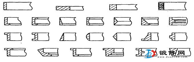 目前輾環工藝在國內外的應用都比較廣泛,如火車輪轂、軸承內外套圈、齒輪圈、襯套、法蘭、起重機旋轉輪圈及各種加強環等。加工的零件尺寸和重量范圍都比較大:直徑自40mm-10000mm,高度自10mm-1000mm,重量自0.2kg-82000kg,具有多種形狀的截面,其典型的例子如圖1-3所示。環件的材料通常為碳鋼、合金鋼、鋁合金、銅舍金、鈦合金、鈷合金、鎳基合金等,常見的環件軋制產品有火車輪轂、軸承環、齒輪環、襯套、法蘭、燃氣輪機環、起重機旋轉輪環、核反應堆容器環及各種加強環等。