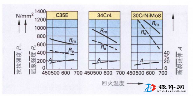 我們從調質曲線圖表可以看到鋼通過回火所獲得的機械性能。