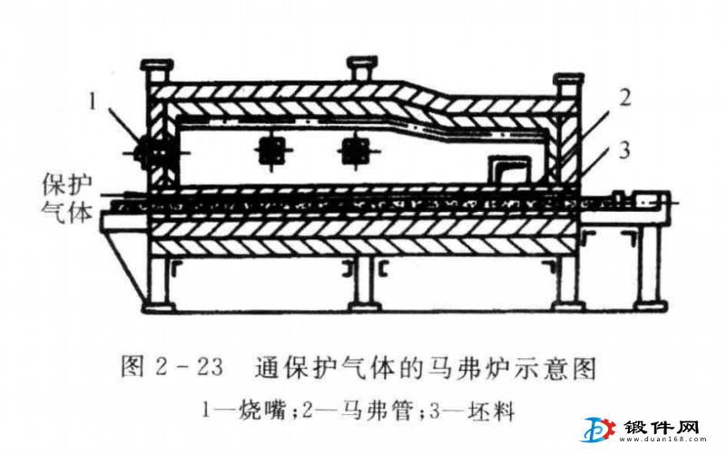 鍛件在鍛造加熱工序中,常用的氣體保護(hù)介質(zhì)有惰性氣體、不完全燃燒的煤氣、天然氣、石油液化氣或分解氨等。可向電阻爐內(nèi)通人保護(hù)氣體,且使?fàn)t內(nèi)呈正壓,防止外界空氣進(jìn)人爐內(nèi),坯料便能實(shí)現(xiàn)少無氧化加熱。通常是由炭化硅、剛玉等材料制成的。加熱時(shí)高溫爐氣在馬弗管外燃燒,而坯料在馬弗管內(nèi)與氧化性爐氣 隔開.通過高溫馬弗管輻射傳熱間接加熱。同時(shí)馬弗管口又不斷通人保持氣體,從而實(shí)現(xiàn)了少 無氧化加熱。這種方法多用于小鍛件加熱,不足的是,坯料出爐后,表面還會(huì)產(chǎn)生二次氧化。