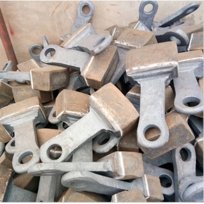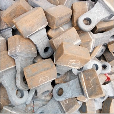 我公司生產的破碎機錘頭頭部采用高鉻合金材料,錘柄采用韌性較好的低合金鋼材料,利用熱復合將兩種不同性能和功效的材料在液液狀態下使其熔融為一體,復合面積可達100%,為鑲合金和兩次復合澆鑄錘頭容易出現的斷裂、掉塊、掉頭等現象,提高了錘頭使用的安全性。