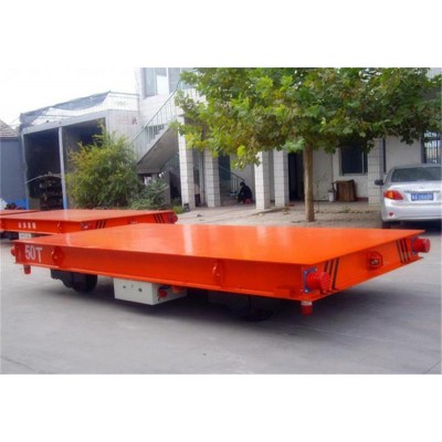 電動(dòng)平車,又稱電動(dòng) 平板車 、電平車、臺(tái)車、 過跨車  電動(dòng)軌道車 、地爬車等,是一種廠內(nèi)有軌電動(dòng)運(yùn)輸車輛,首先它是一種軌道型運(yùn)輸車輛,需要在地面上鋪設(shè)軌道,軌道一般為工字型面接觸道軌;其次它是電驅(qū)動(dòng)車輛,在電機(jī) 減速機(jī) 驅(qū)動(dòng)下自動(dòng)運(yùn)行,再次它是一種平板車,臺(tái)面平整無廂蓋,特殊情況下也可以是非平面但無廂蓋,車體無方向盤只有前進(jìn)后退方向(即使轉(zhuǎn)彎也城靠軌道轉(zhuǎn)彎)。此種車輛具有結(jié)構(gòu)簡(jiǎn)單、使用方便、承載能力大、不怕臟不怕砸、維護(hù)容易、使用壽命長(zhǎng)等特點(diǎn),因其方便、壯實(shí)、經(jīng)濟(jì)、實(shí)用、易清理等諸多優(yōu)點(diǎn),成為企業(yè)廠房?jī)?nèi)部及廠房與廠房之間短距離定點(diǎn)頻繁運(yùn)載重物的**運(yùn)輸工具。