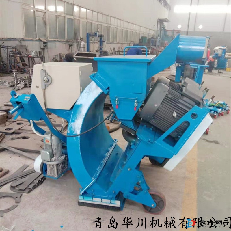 離心式拋丸機處理橋面是針對有堅硬表面的雜質所采用的高效、清潔、無塵的方法,這種方法最常采用.拋丸處理設備內部為一個可高速旋轉的葉輪,磨料、粉塵及雜質均被清理至雜物回收機,清理后的鋼丸可再被回收利用.經拋丸處理過的混凝土表面潔凈而又堅硬,還有比較均勻的紋理.在無障礙的水平表面上,這種方法尤為適用。