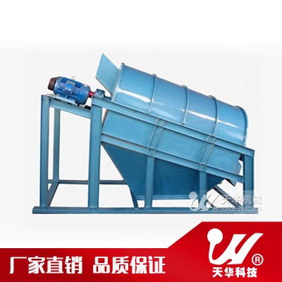 滾筒篩的主體結構是篩分筒,它是由若干個圓形狀篩網組成,整體與地平面成傾斜狀態,外部被密封隔離罩所密封,以防止污染環境。通過變速減速系統使篩分筒在一定轉速下旋轉,物料自上而下通過篩分筒得到分離,細料從篩分筒前端下部排出,粗料從篩分筒下端尾部排出。滾筒篩(圓筒篩、回轉篩)可設有梳形清篩機構,在篩分過程中可通過梳形清篩機構與篩分筒的相對運動,達到對篩體不問斷清理的效果,使篩分筒在整個工作過程中始終保持清結、不粘、不堵、不影響篩分效果。