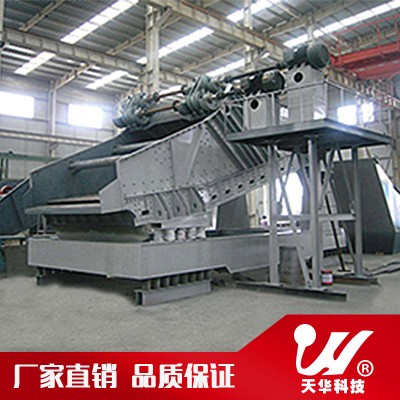香蕉型振動(dòng)篩又名直線等厚振動(dòng)篩,篩面采用多段不同傾角布置的篩板,縱向斷面折線形式,整個(gè)篩面呈香蕉型,從而保證入料端到出料端料層厚度基本一致,使篩機(jī)篩分效率及處理量大大提高,特別適用于細(xì)粒含量高的大、中粒級物料的粒度分級,亦可用于脫水、脫介和脫泥等作業(yè)。
