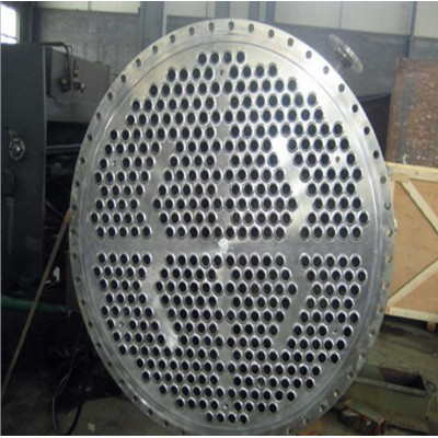 管板,就是在圓形鋼板上鉆出比管子外徑一樣略大一些的孔,將管子穿入焊住固定,起這樣作用的一種配件。